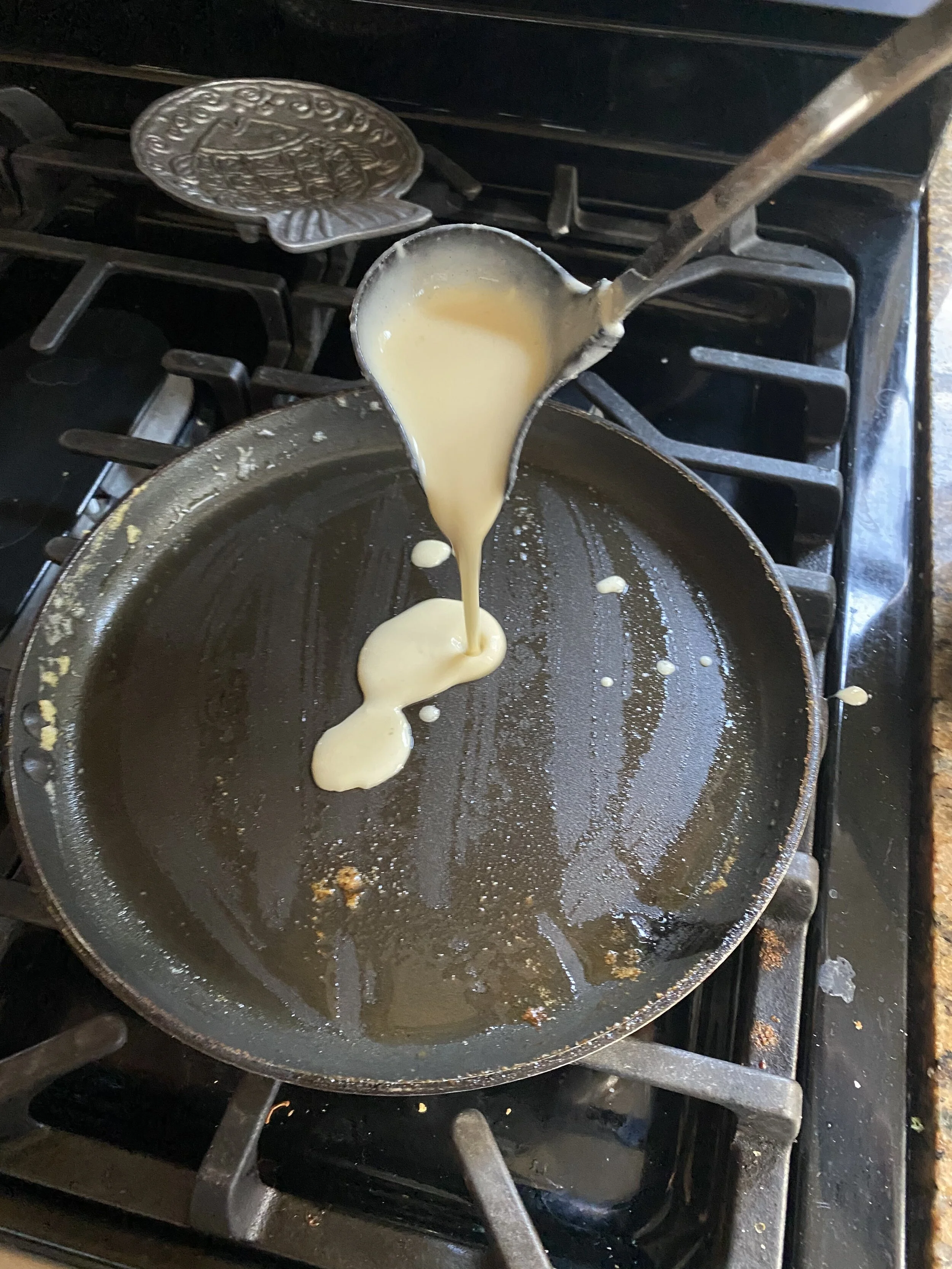 5 tablespoons butter, melted (melt it in the crepe pan)